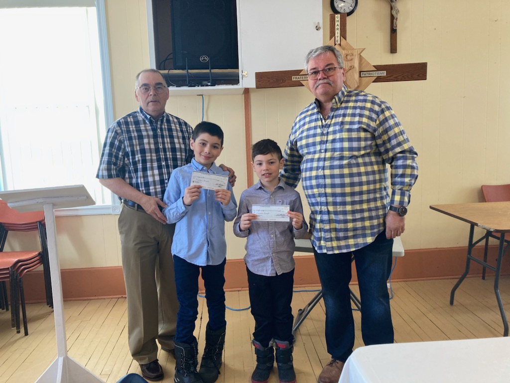 le député de district 15, Roméo Benoit et le grand Chevalier du conseil 7529 Marcel Hachey ont remis les chèques au gagnants au niveau de l’état à Zachary et Maximin Benoit.